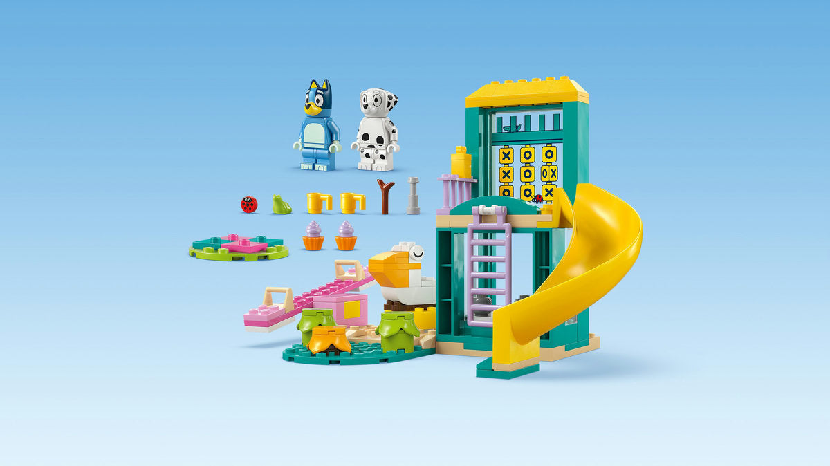 Присъединете се към Блуи и Клои на площадката. Блуи се изкачва по стълбата до върха на кулата, поглежда през телескопа, след което се пуска по пързалката. Клои скача от растение на растение, а после се втурва при Блуи на люлката. След това приятелите се редуват да седят на въртящия се пеликан. Дръжте се! Накрая е време за напитки и кексчета (вкусно!), преди да се върнете към забавления на площадката.