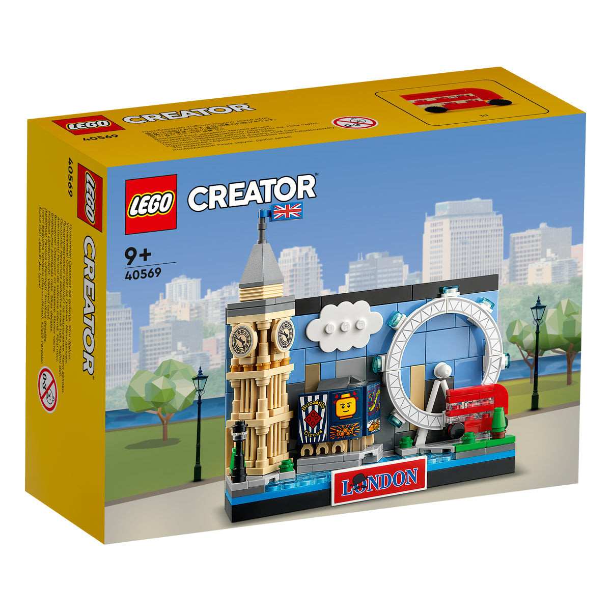 Отпразнувайте един от най-великите градове в света с този фантастичен 3D сглобяем комплект Изглед от Лондон (40569). Този супер готин подарък включва някои от най-известните забележителности на британската столица: Биг Бен, Пикадили Съркъс, Лондонското око и червен двуетажен автобус. Децата могат също да украсят пощенската картичка с флага на Union Jack и името на града.