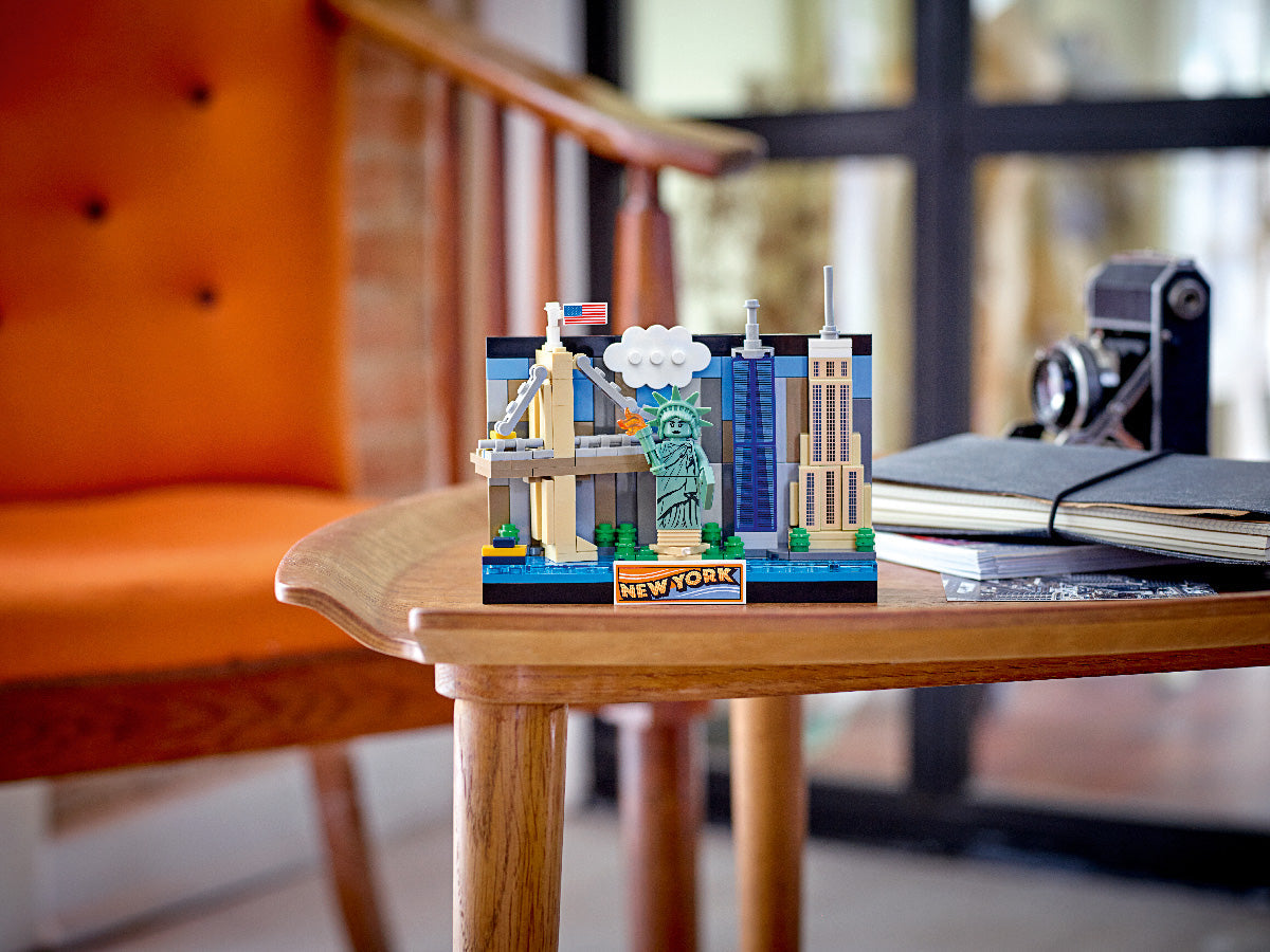 Вдъхнете живот на силуета на Ню Йорк с тази невероятна 3D пощенска картичка LEGO®. Този невероятен подарък включва някои от най-известните забележителности на Голямата ябълка: Статуята на свободата, Емпайър Стейт Билдинг и Единния световен търговски център. Децата могат също да украсят пощенската картичка със стикери на американското знаме и името на града.