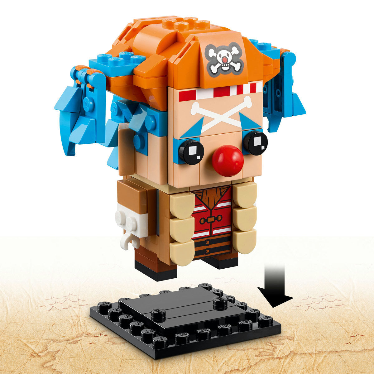 Съобщение за всички фенове на ONE PIECE! Създайте свой собствен Buggy the Clown в готин LEGO® BrickHeadz™ стил. Капитанът на пиратите Buggy има автентични детайли, носи шапка и стои на здрав фундамент. Колекционерската играчка предлага забавно построяване, игра и показване и е идеална за самостоятелни приключения и показване с други герои от колекцията LEGO BrickHeadz (продават се отделно).