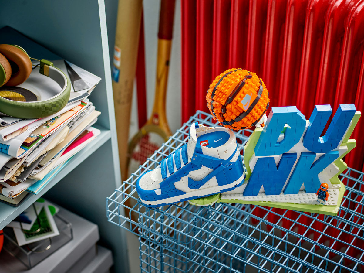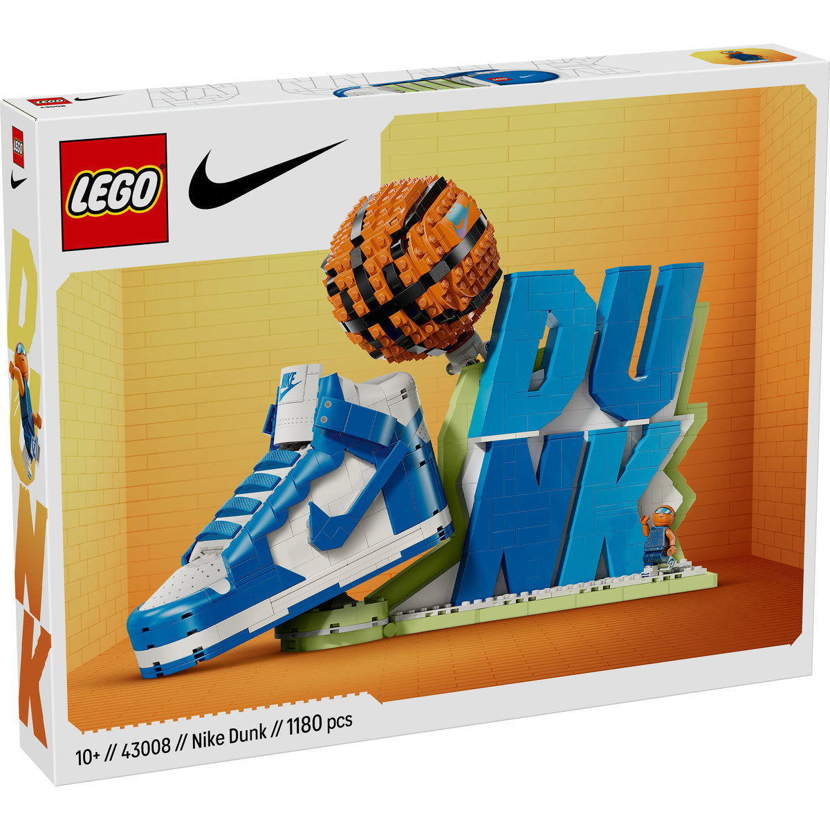 Наредете се на опашката за най-горещата колекция за сезона. Създадена и носена за пръв път преди повече от 40 години, Nike Dunk е световна икона и сега е ваш ред да я вкарате в игра със страхотен конструктор от колекция LEGO® Nike. Създайте маратонка, баскетболна топка и слоган и ги персонализирайте по свой избор. И не пропускайте ексклузивната минифигура B'Ball Head със собствена декорация Nike!
