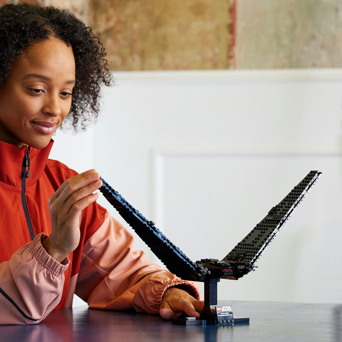Отбележете десетата годишнина от Star Wars: The Force Awakens™, като построите командната совалка на Кайло Рен. Потопете се в сложното предизвикателство да пресъздадете отличителния семпъл силует на совалката. Поставете емблематичния космически кораб на стойката и нагласете крилата, за да го покажете в режим на кацане или полет, за да създадете драматичен експонат.