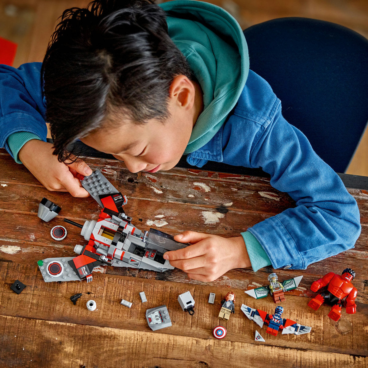 • Подарък LEGO® Marvel с част от Отмъстителите за деца – децата, които обичат реактивни самолети, Капитан Америка, Ястреба и Червения Хълк, могат да изследват безкрайни възможности за творческа игра с играчката за конструиране със супергерои