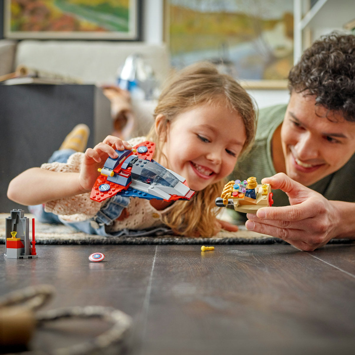 Танос пътува през космоса със своя космически кораб в стил „ръкавица на безкрайността“, за да открадне скъпоценен космически камък. С ракетната установка на космическия кораб и движещите се „пръсти“ никой не смее да му попречи! Но когато Капитан Америка прихваща злодея със страхотния си Куинджет с две оръдия, е време за космически сблъсък!